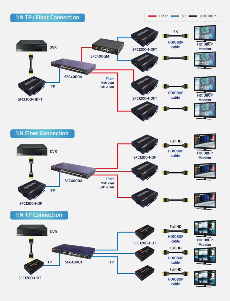 4K HD1080P 영상을 전송하기 위해 SFC1200-HDFT, SFC1200HDF를 이용한 솔루션