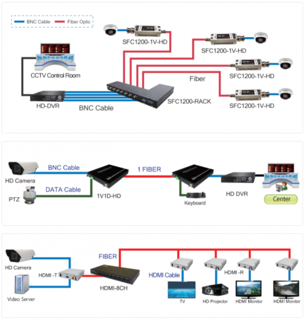 HD-SDI 표준규격의 HD 급의 고화질 영상을 광케이블로 장거리 전송하는 솔루션